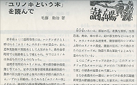 この度、毛藤勤治著「ユリノキという木」という、ただ一種類の木とそれにまつわる事柄をまとめた三百ページの本が出版された。これを聞いたとき「なにがなんでも、一つの植物についてこんなに」と抵抗を覚えたが、副題が「魅せられた樹の博物誌」、加えて、さらに英語で「ユリノキ物語」と添え書きしていることに興味をそそられて読む気になったことは事実であった。