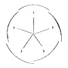 さて、葉序と同じ見方で花弁の重なり方を見るとどうなるか?先のA、Bは後廻しにした方が都合がよいので、かわら状(imbricate…これも後で説明し直さねばならない)の5弁花をとり上げる。まずどれか1番下に来る花弁を基準とし、これを1と名付けておく。(図−3、F)5枚の花弁が等しい角度で並ぶには1/5、2/5、3/5、4/5の4通りがあるが、4/5は1/5の逆廻り、3/5は2/5の逆廻りと思えばよいから、1/5と2/5だけ考えればよい。この内1/5はA、Bに似てくるので、後廻しにする。