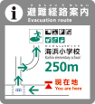 防災標識には「JIS化された災害種別図記号」を用いることで、避難場所表示の標準化を進めています。